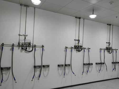 2.4N氫氣主管線線選用OD3/8”(6.35mm)的管線,0.5Mpa壓差粗俗量能達8M3/一小時,幾乎充分滿足一般用氣訴求,支線選用OD1/4”(6.35mm)的管線。用焊接工藝三通管件并成支路來對的設備進行集中供熱。